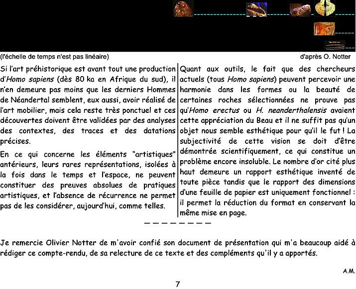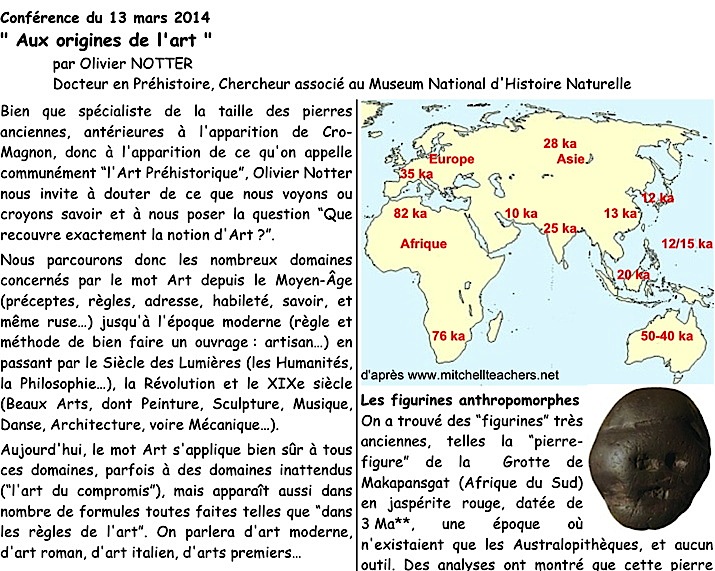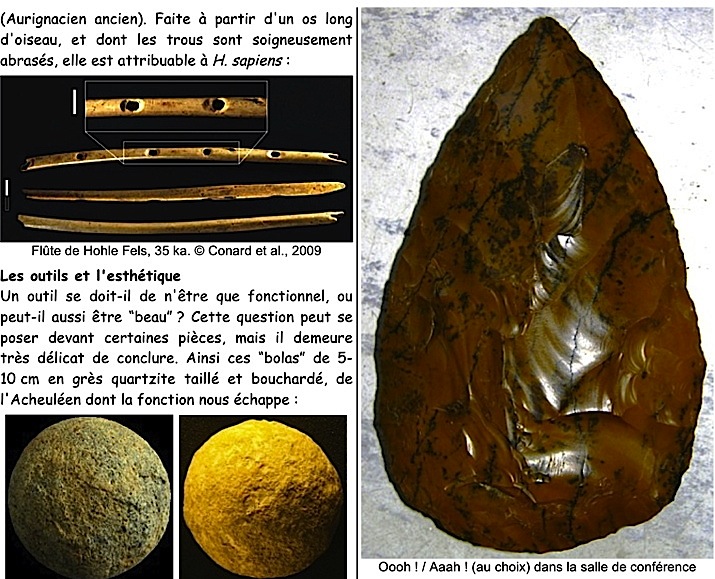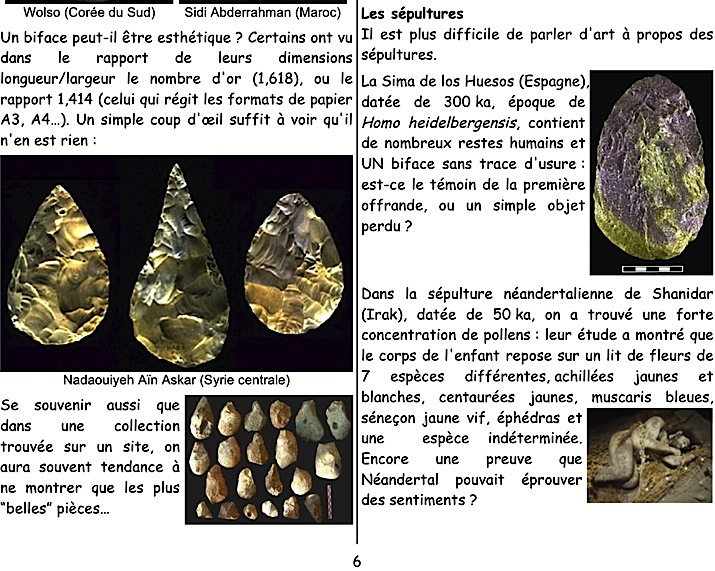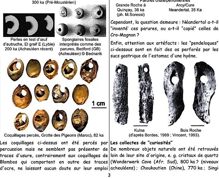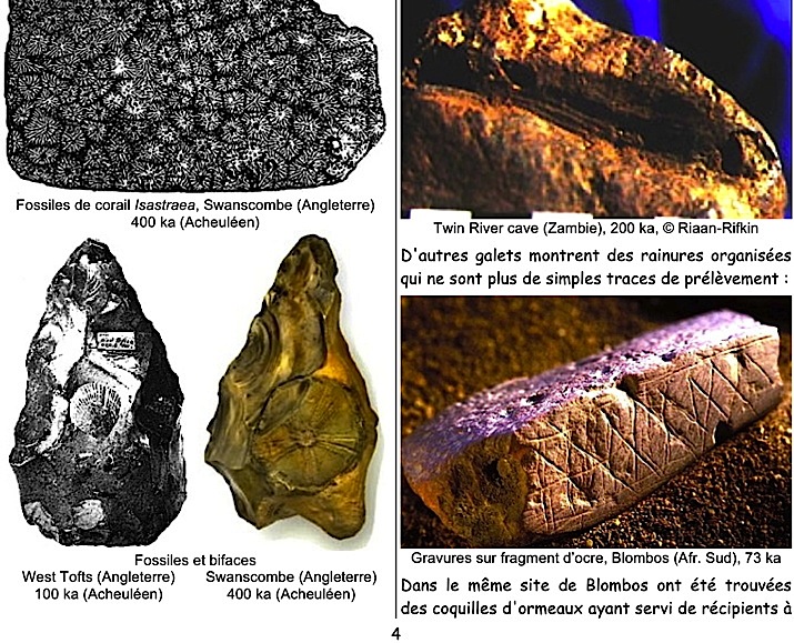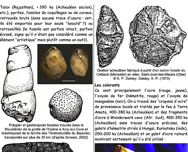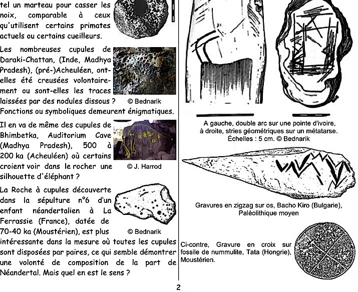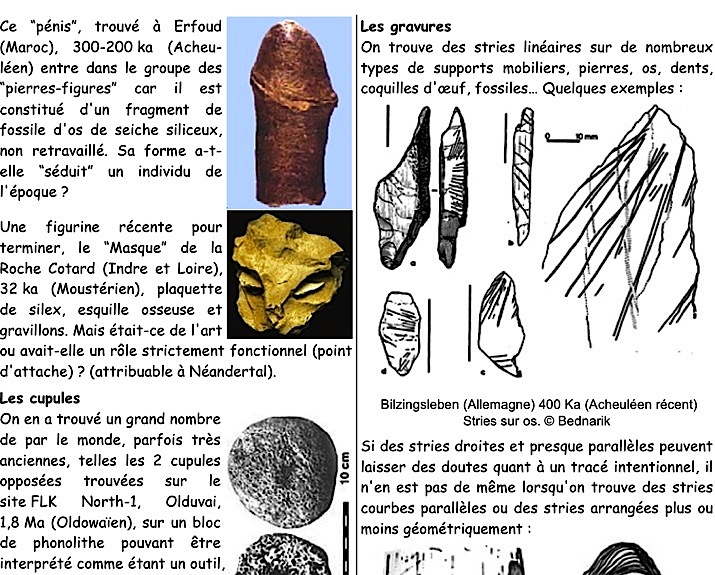 Mots-clés : pierre-figure, Tan-Tan, Berekhat, cupules, gravures, stries, parures, Blombos, Châtelperronien, colorants, ocre, coquillages, musique, flûtes, bifaces, sépultures
