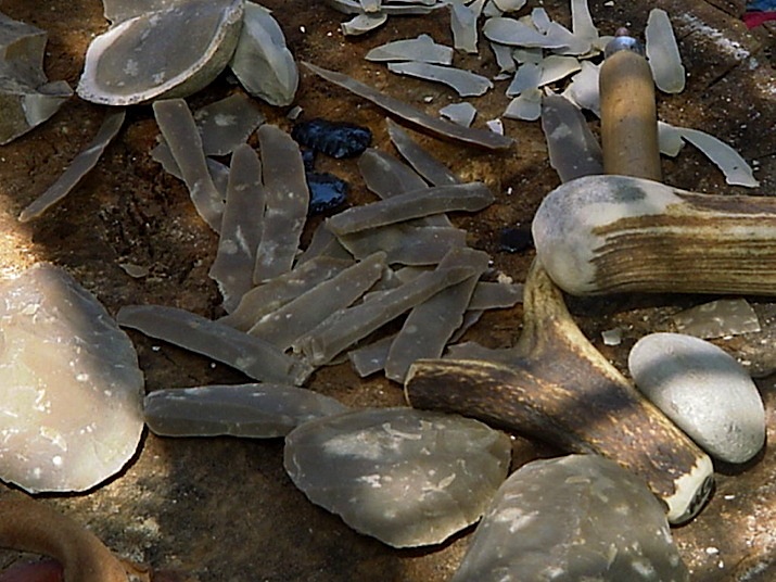 Bifaces, percuteur tendre et lames débitées - © O. Notter