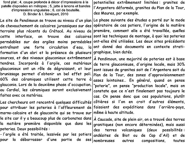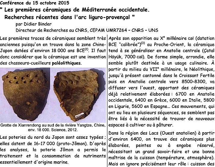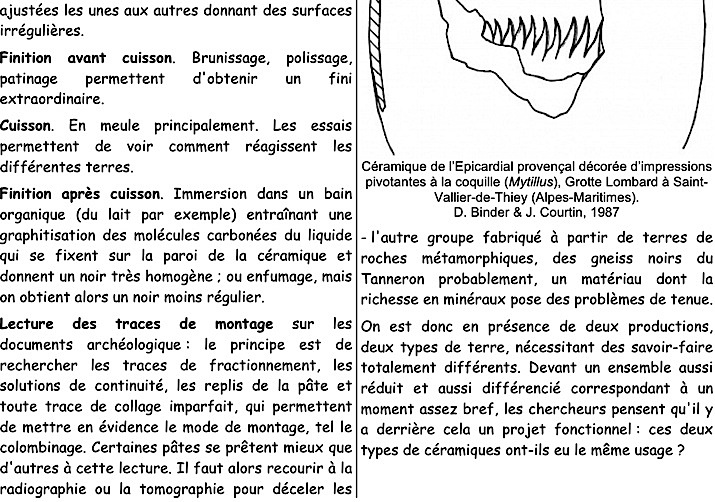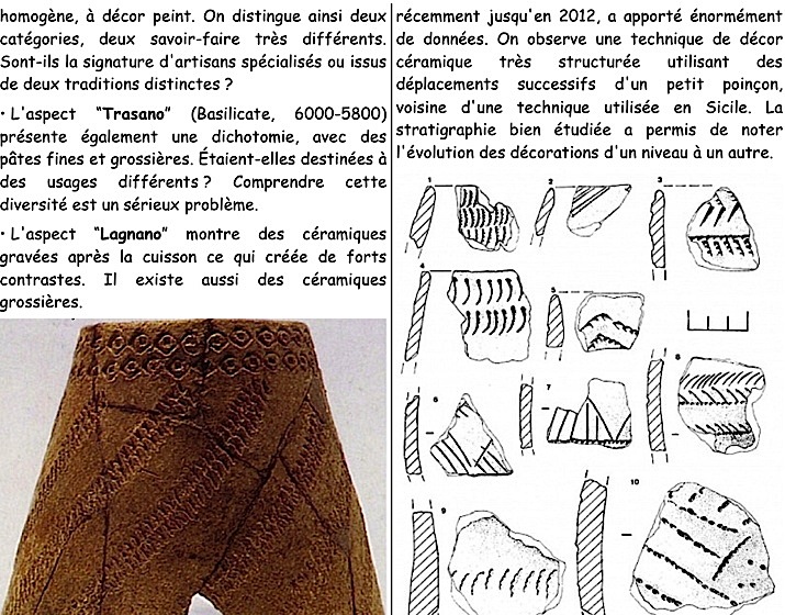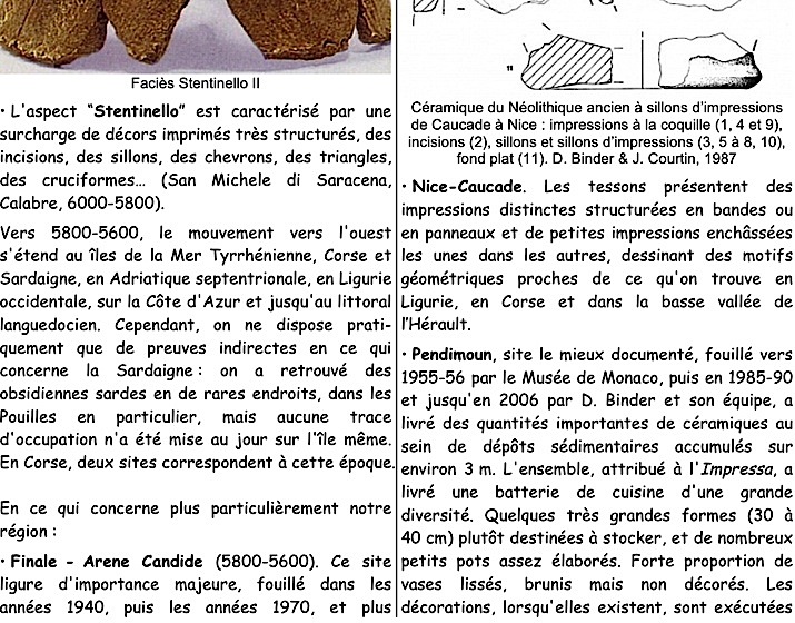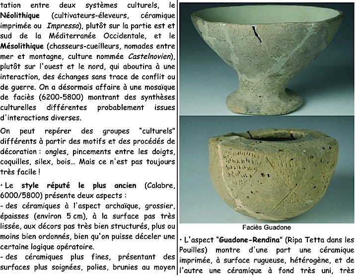 Mots-clés : Mésolithique, Néolithique, Impressa, Cardial, Guadone, Rendina, Trasano, Lagnano, Stentinello, Arene Candide, Caucade, Pendimoun, argile, glauconie