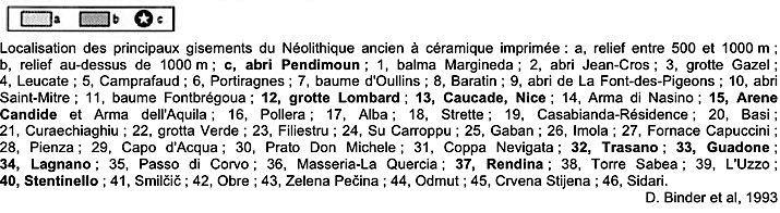 (Nouvelles vues sur les processus de néolithisation dans le sud-est de la France. Didier Binder & Jean Courtin. In : Premières communautés paysannes en Méditerranée occidentale. Jean Guilaine, Jean Courtin, Jean-Louis Roudil, et al. © CNRS Éditions, 1987.)
