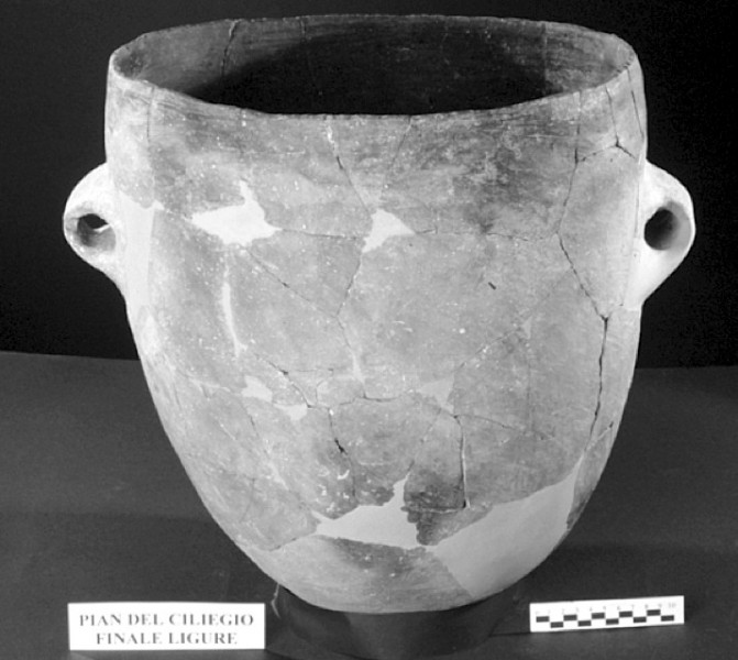 Grand vase de la Culture des vases à Bouche Carrée du Néolithique moyen retrouvé à Pian del Ciliegio (Finale Ligure).