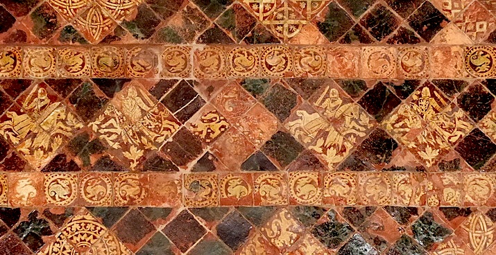 Carrelage médiéval (fin 13e), frise des chevaliers :