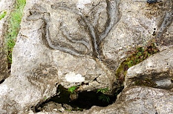 Découverte (sous la pluie) du lapiaz, formation géologique résultant du ruissellement dans les roches calcaires de pluies qui dissolvent la roche, ce qui donne au final des rigoles, fissures et crevasses. Un géologue à la connaissance locale intéressante et passionnante nous a accompagnés pour découvrir empreintes et lapiaz.