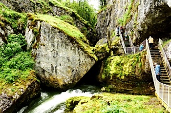 Puis un petit détour vers les Pertes de l'Ain, un chaos de blocs d'où jaillit la rivière, ayant pour origine l'effondrement de la voute qui surmontait une ancienne partie souterraine de son cours.