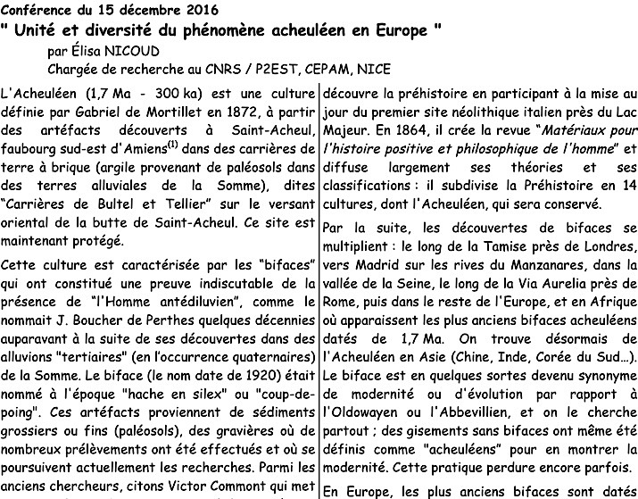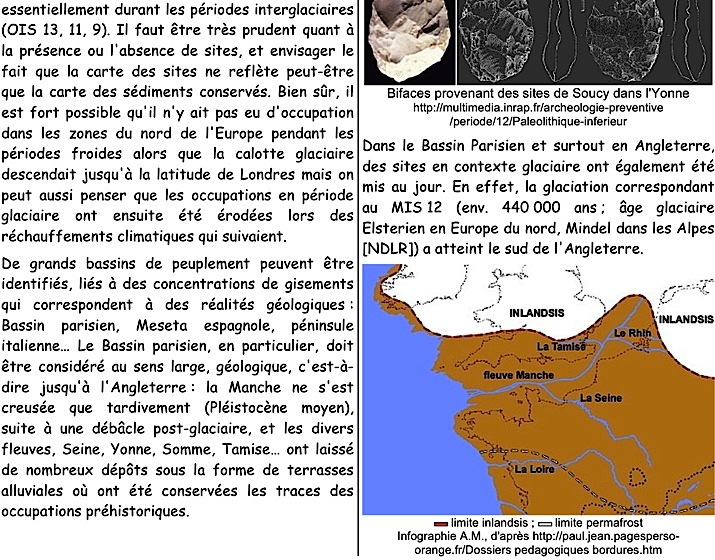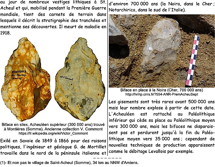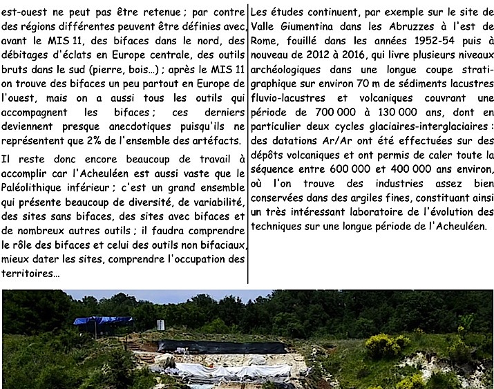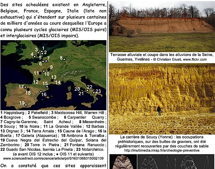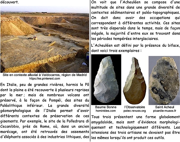 Mots-clés : Acheuléen, Paléolithique inférieur, Mortillet, Commont, Movius, Seine, Somme, Tamise, Manzanares, Noira, Notarchirico, biface, Homo erectus, Homo heidelbergensis. interglaciaire, terrasse alluviale