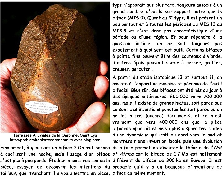 Marie-Hélène Moncel et al (2016). Assemblages à outils bifaciaux en Eurasie (première partie). Que se passe-t-il à l’Ouest? Données sur l’Europe occidentale et méridionale ainsi que sur le Levant. http://www.sciencedirect.com/science/article/pii/S1631068315002109