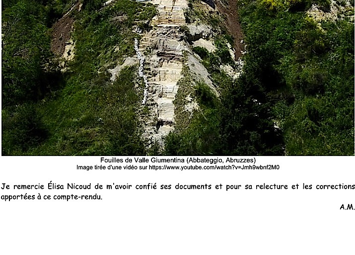 Elisa Nicoud, Aureli D., Pagli M., Villa V., Chaussée C., Agostini S., Bahain J.J., Boschian G., Degeai J.-Ph., Fusco F., Giaccio B., Hernandez M., Kuzucuoglu C., Lahaye C., Lemorini C., Limondin-Lozouet N., Mazza P., Mercier N., Nomade S., Pereira A., Robert V., Rossi M.A., Virmoux C., Zupancich A. (2016). Preliminary data from Valle Giumentina Pleistocene site (Abruzzo, Central Italy): A new approach to a Clactonian and Acheulian sequence, Quaternary International. http://dx.doi.org/10.1016/j.quaint.2015.08.080