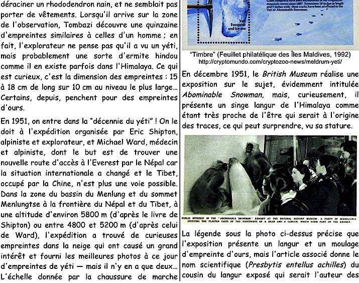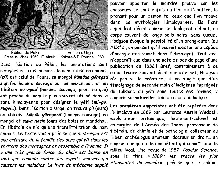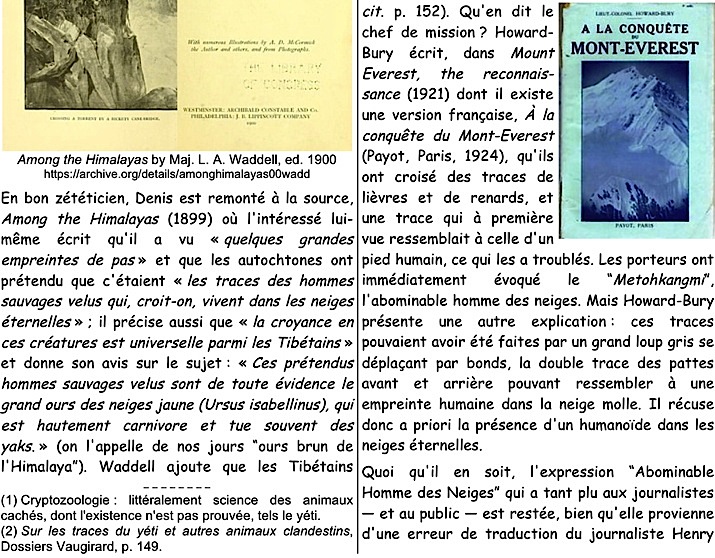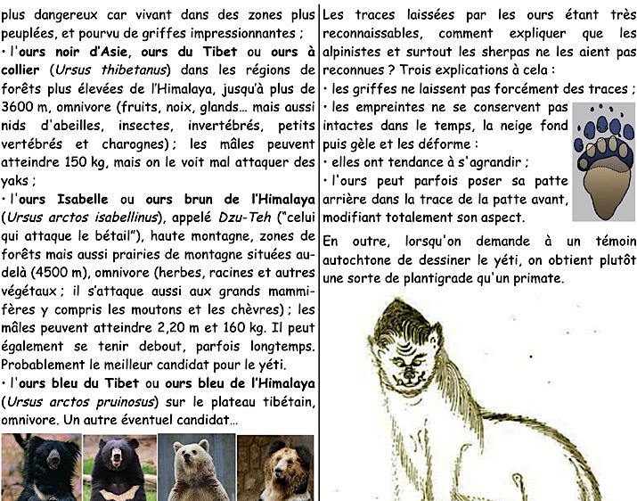 Mots-clés : Himalaya, Népal, Sikkim, Bhoutan, Tibet, Migoi, Mi-go, Mi-rgod, Chemo, Kümün göregesü, Suwa nasin, Metoh-Kangmi, Snowman, monastère, Pangboche, Gandan, Sosar Gompa, Khumjung, Gangtey, L.A. Waddel C.K. Howard-Bury, N. Tombazi, E. Shipton, M. Ward, E. Hillary, Tensing Norgay, T. Slick, Reinhold Messner, P. Byrne, Melursus ursinus, Ursus thibetanus, Ursus arctos isabellinus, Ursus arctos pruinosus