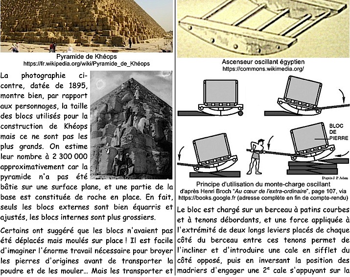 Peut-être avez-vous vu les deux films qui sont passés sur ARTE le 26 décembre : Terre des Pharaons et L'Égyptien… Nous avons eu droit à quelques versions (traineau sur rails, rondins, grue sans contrepoids…) du transport de lourds blocs pour l'érection des pyramides, ainsi qu'aux accidents de chantier.