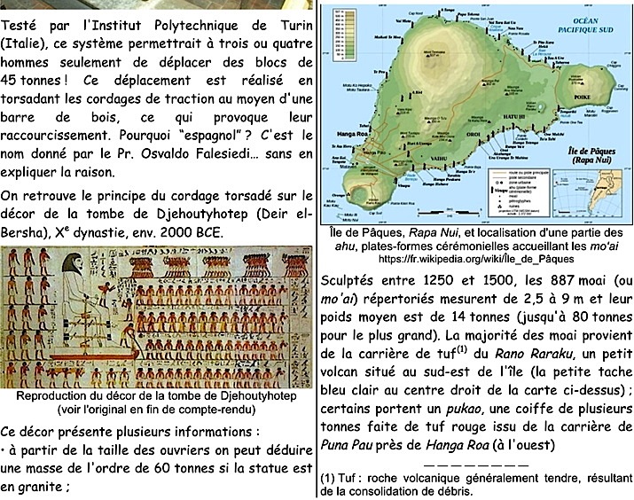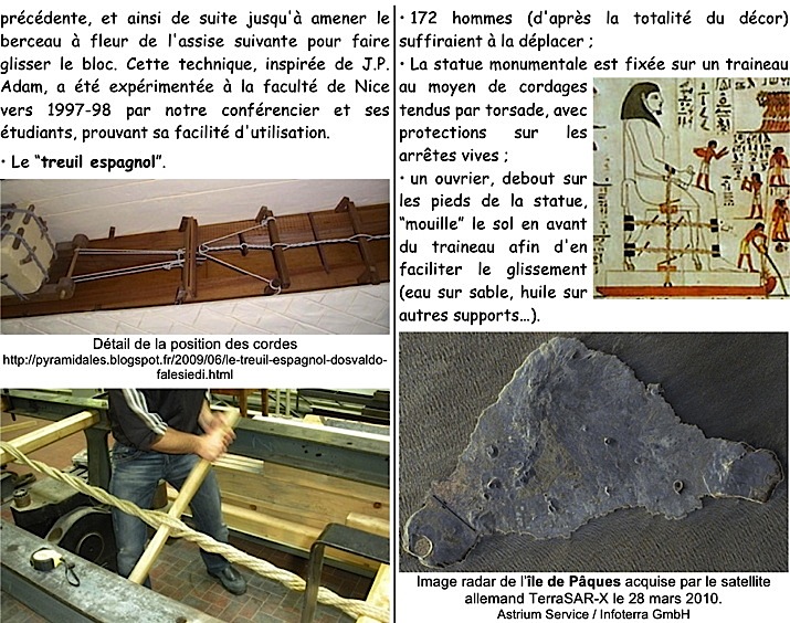 Mots-clés : pyramide, Gizeh, Khéops, berceau oscillant, treuil espagnol, Île de Pâques, Rapa Nui, moai, Rano Raraku, pukao, chèvre oscillante, dandinement haubané, Stonehenge, Malte, trilithe, monolithe, tumbaga, Nazca, géoglyphe, Palenque, Temple des Inscriptions, Pakal I, Temple de la Croix