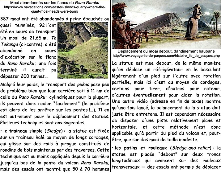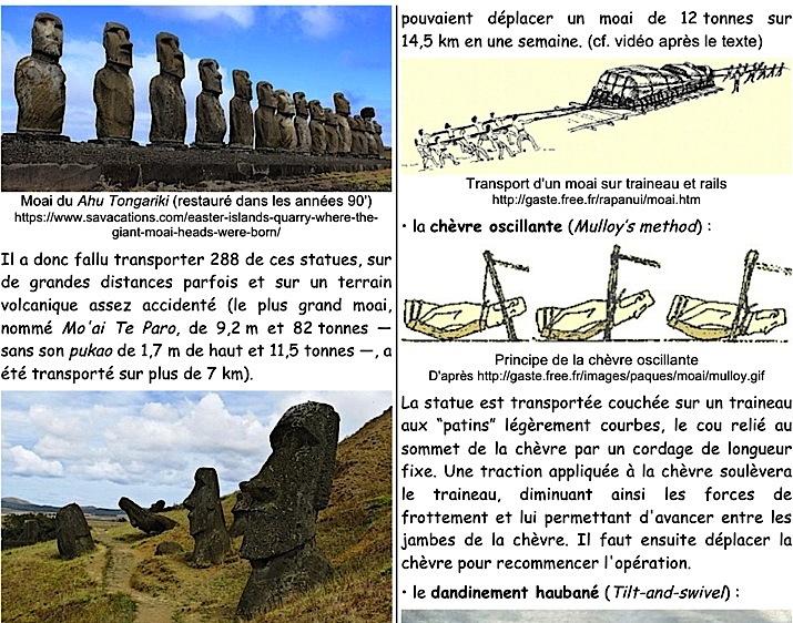 Le “dandinement haubané” pour déplacer un moai (d'environ 4-4,5 tonnes)… : https://www.youtube.com/watch?v=yvvES47OdmY