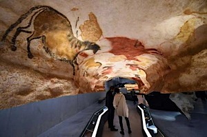 L'après-midi, visite guidée de la reconstitution partielle de la grotte de Lascaux, dite Lascaux IV. Ce fac-similé rend hommage à l'Art préhistorique et à ses artistes, l'Homme de Cro-Magnon du Magdalénien en reproduisant la Salle des Taureaux (ou Rotonde), le Passage, la Nef et l'Abside ; le Diverticule des Félins (trop étroit) et le puits (trop vertical) ne sont pas reproduits ici mais certains éléments sont visibles dans l'Atelier (photo https://www.lemonde.fr) qui prolonge la visite et que nous recommandons fortement (quitte à faire l'impasse sur le film et le “Théâtre” si le temps vous manque).