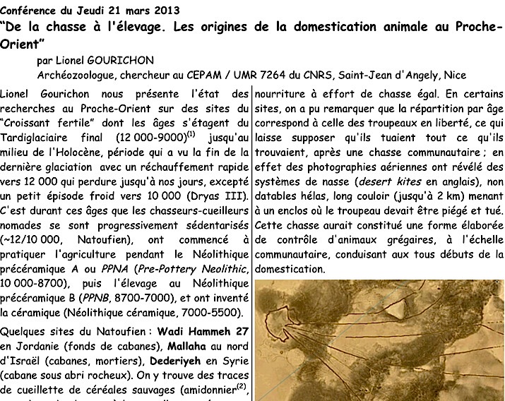Mots-clés : domestication, élevage, chasse, sédentarisation, agriculture, Natoufien, desert kytes
