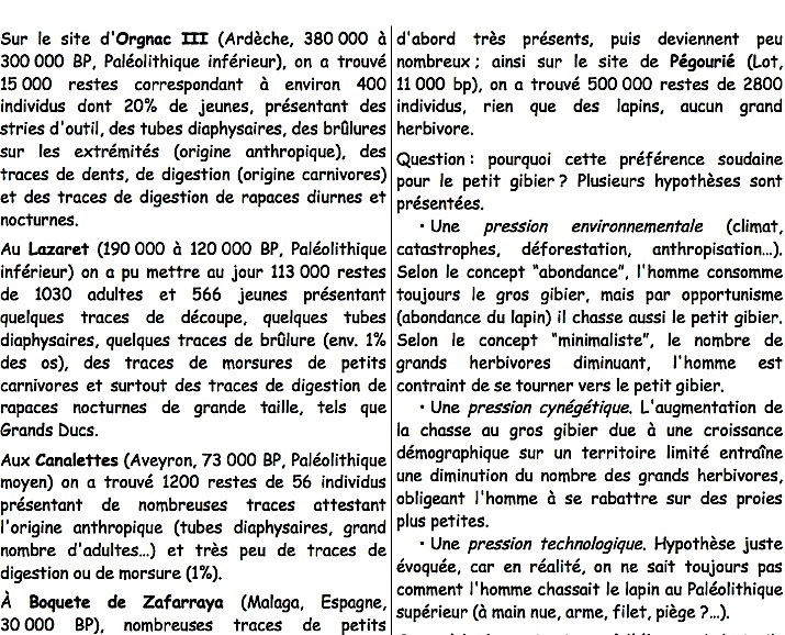 Mots-clés : lagomorphe, paléolithique, site préhistorique, ossements