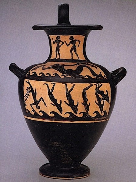 Sur la panse, les pirates en fuite sont métamorphosés en dauphins lors de leur plongeon, scène très rarement représentée.