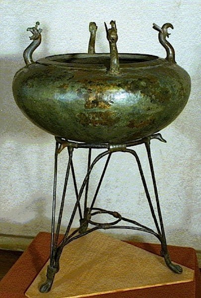 Bassin et trépied étrusques en bronze, VIe siècle av. notre ère.