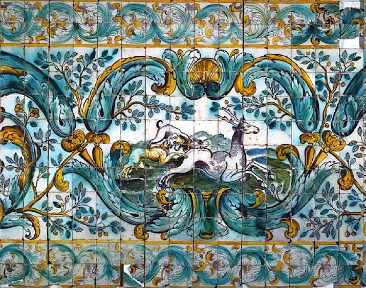 Le Musée présente une grande collection d'œuvres de tous les siècles, y compris le dernier (le XXe bien sûr). A l'origine les azulejos sont d'inspiration religieuse avec des décors polychromes de plantes et animaux, puis ce sont des panneaux bleus très grands qui décorent les chœurs des églises à partir du XVIIe. Certains décors imposants du XVIIIe sont conçus pour être installés sur le mur d'un escalier ; les tuiles utilisées sont alors en forme de losange et non de carré. D'autres sont “gigantesques” comme cette représentation de la ville de Lisbonne et de ses environs au XVIIIe, un panneau superbe et passionnant, de plus de 10 m de long installé sur le mur d'une cour intérieure. De nombreux panneaux sont profanes, et parmi eux une caricature du genre humain : des singes en carrosses avec leurs singes laquais et cochers, et des singes du peuple jouant aux cartes, fumant, buvant… A noter qu'une calèche était décorée d'une tête… d'homme, seule représentation humaine du panneau.