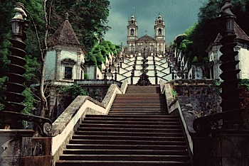 Le matin, près de Braga, visite de Bom Jesus do Monte, escalier des cinq sens et des trois vertus, typique du baroque du Nord du Portugal (XVIIIe siècle). L'après-midi, visite de Viana do Castelo, son dolmen, sa vieille ville renaissance et manuéline, son musée aux azulejos du XVIIIe et faïences portugaises. Coucher à Santo Tirso.
